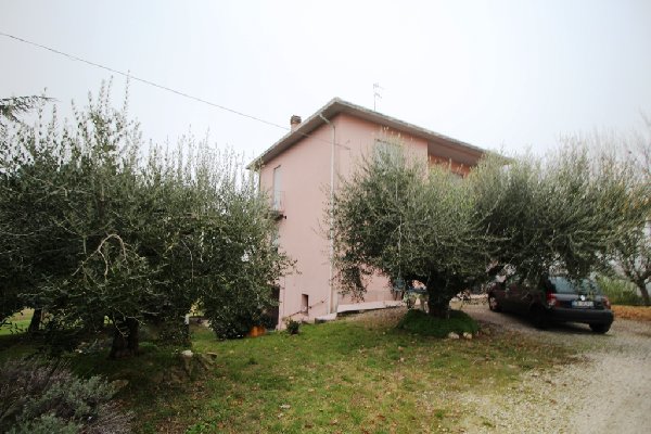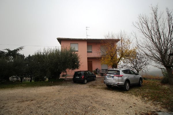 colline sopra villagrappa con vista sulla romagna fino al mare, vendesi casa con ampio giardino e terreno agricolo coltivato a vigna, sviluppata su tre piani, composta al piano seminterrato da locali di servizio uso cantina, tavernetta, bagno lavanderia ed eventuale camera degli ospiti o garage, piano terra con ingresso ampio, soggiorno, sala da pranzo, cucina, anti bagno, bagno, terrazzino, piano primo con disimpegno notte, 3 letto matrimoniali, bagno finestrato, 2 terrazzi. il giardino di pertinenza della casa č circa 2500 mq. ace classe G 210 kwh/mq/anno